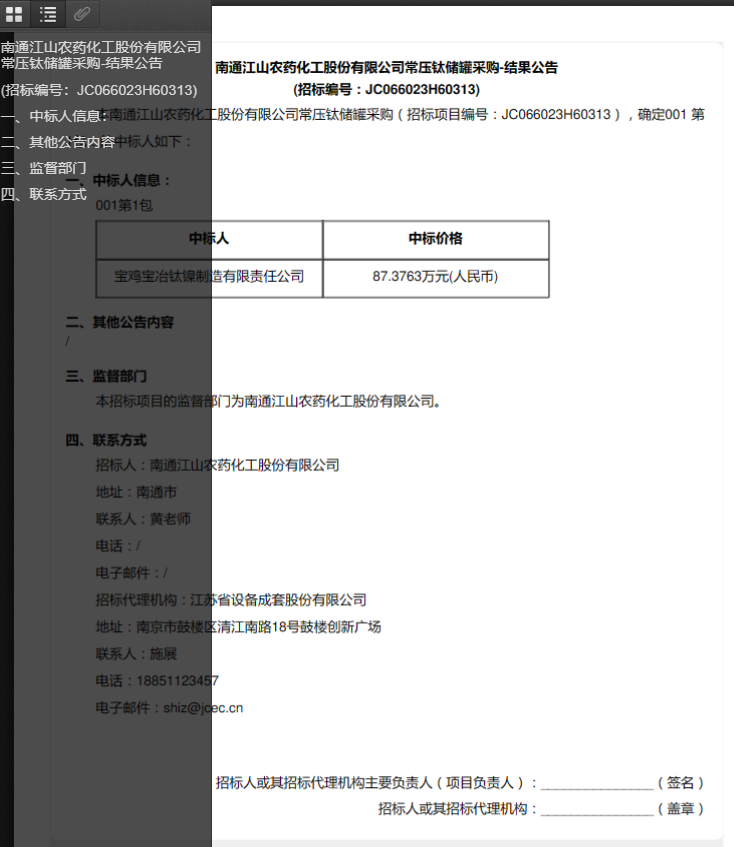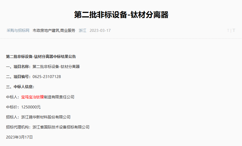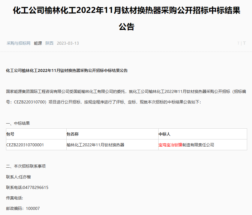 —— 2023年一季度寶冶鈦鎳制造有限責(zé)任公司連續(xù)中標(biāo)約計(jì)2000萬(wàn)元合同